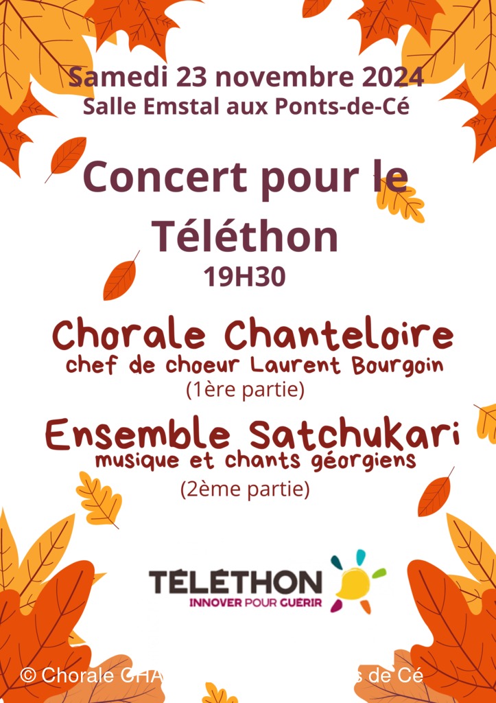 Le samedi 23 novembre 2024, Chanteloire a donné un très beau concert pour le Téléthon dans la salle Emstal des Ponts-de-Cé.